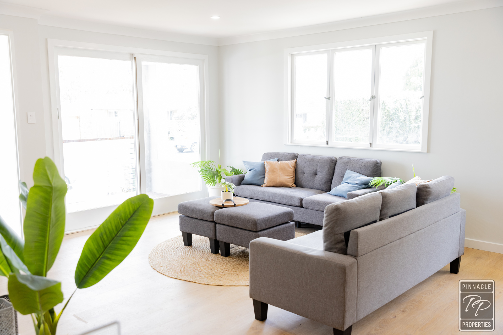 The internal stairs to access the garage have glass balustrading, adding to the light and airy feel. There is also a bonus multipurpose room downstairs. This could be used for your work from home office, a teenage retreat, or accommodation for guests.