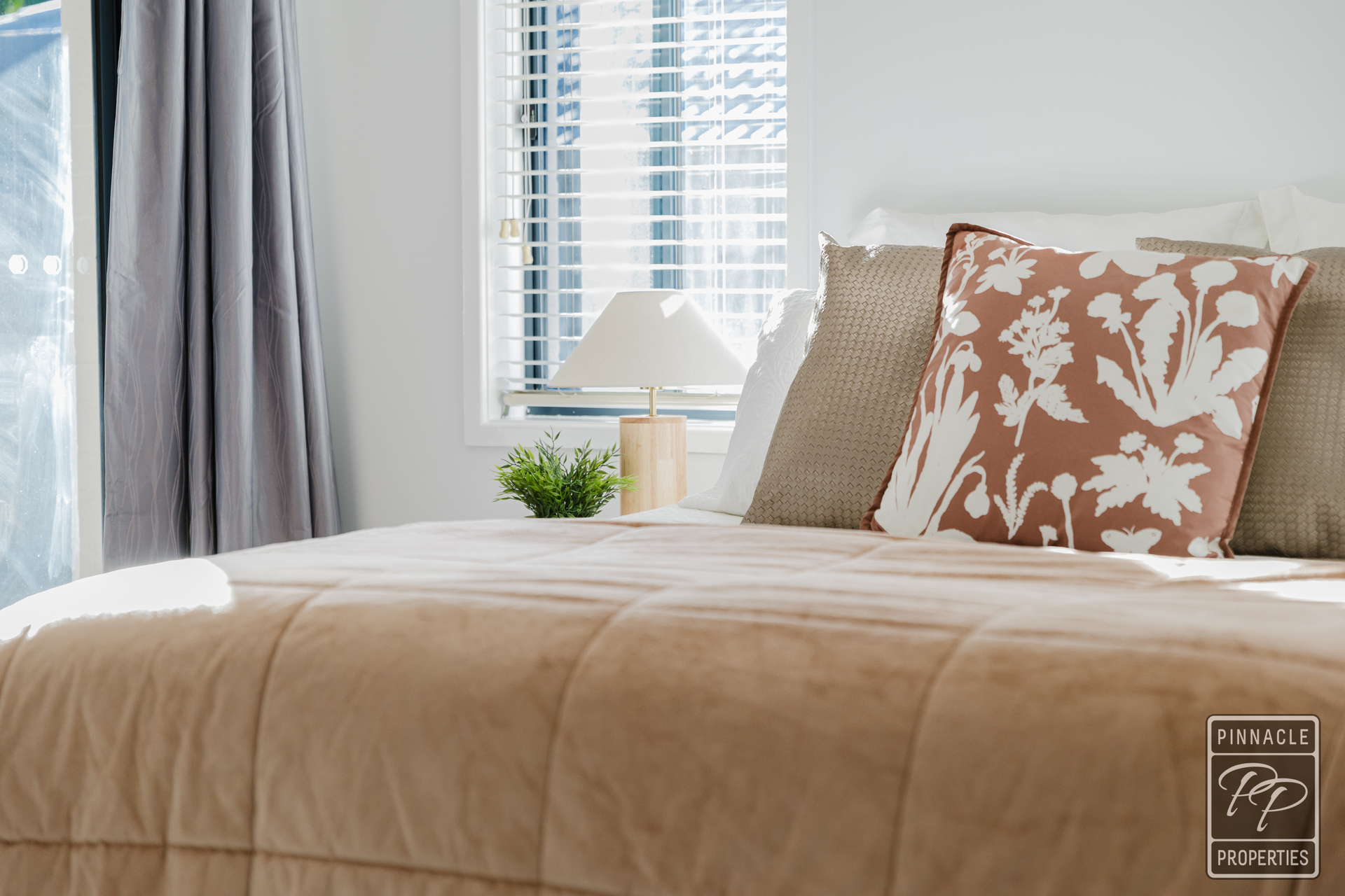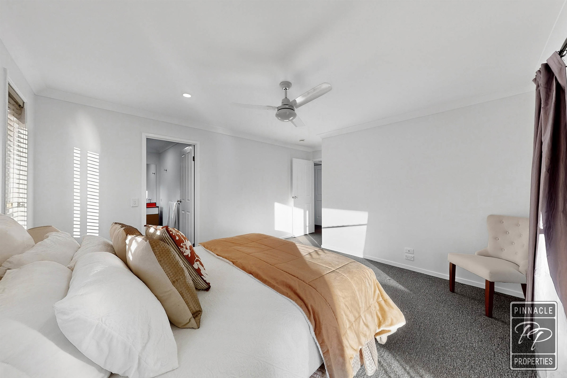 The king-sized main suite comes complete with a generous walk-in robe and ensuite, ceiling fan and access to the patio through large sliding doors. This is a delightful, airy bedroom, the perfect place to relax and recharge.