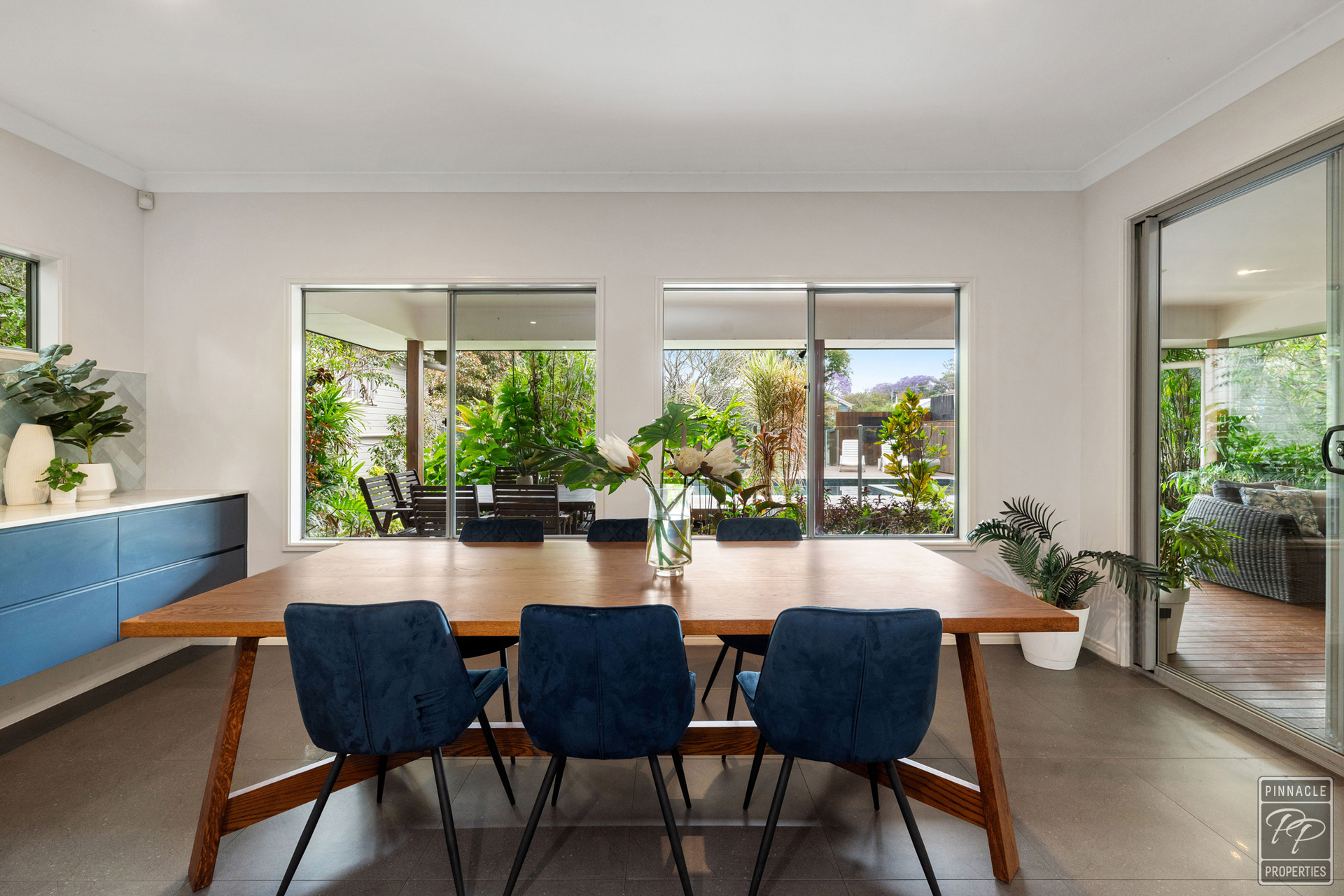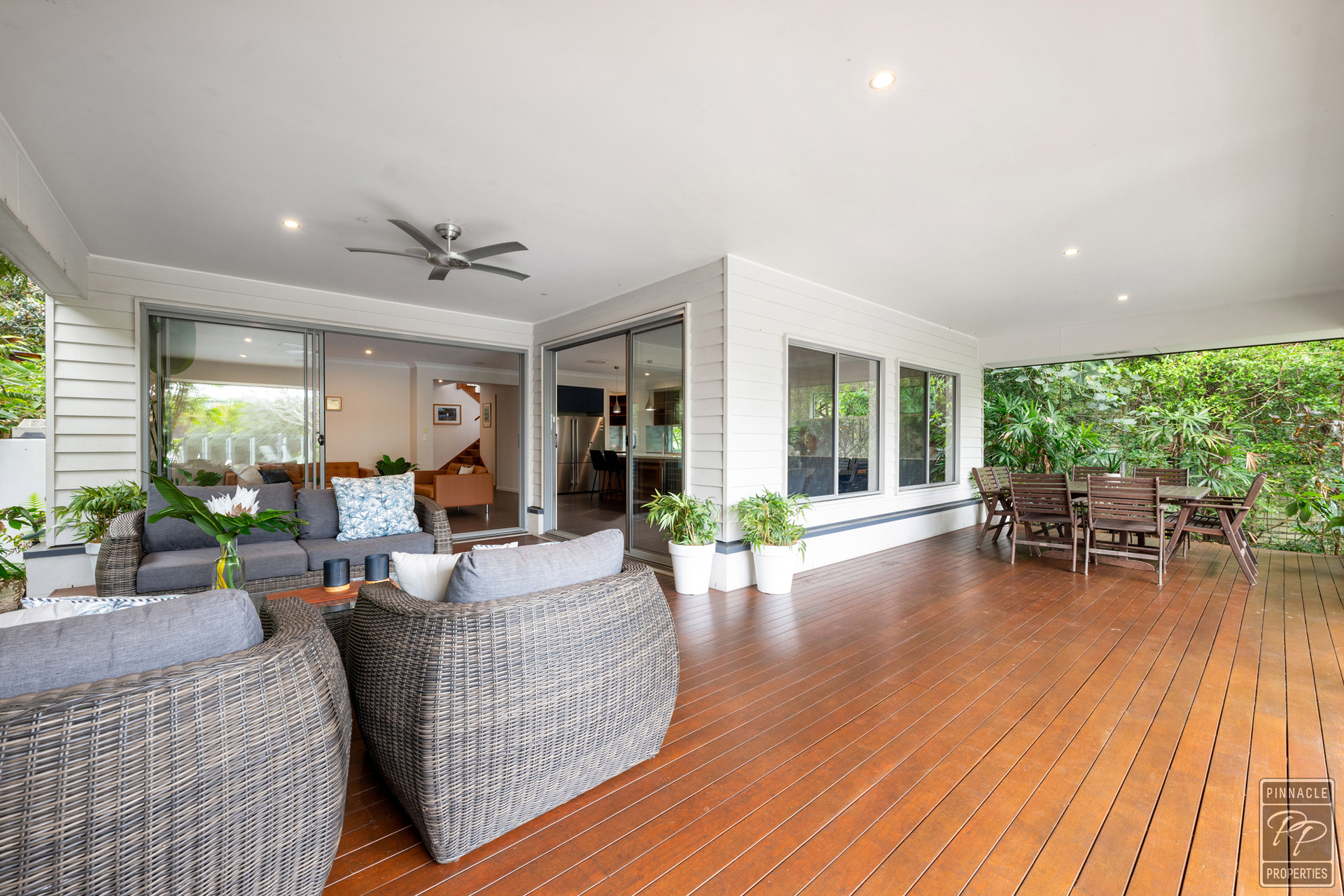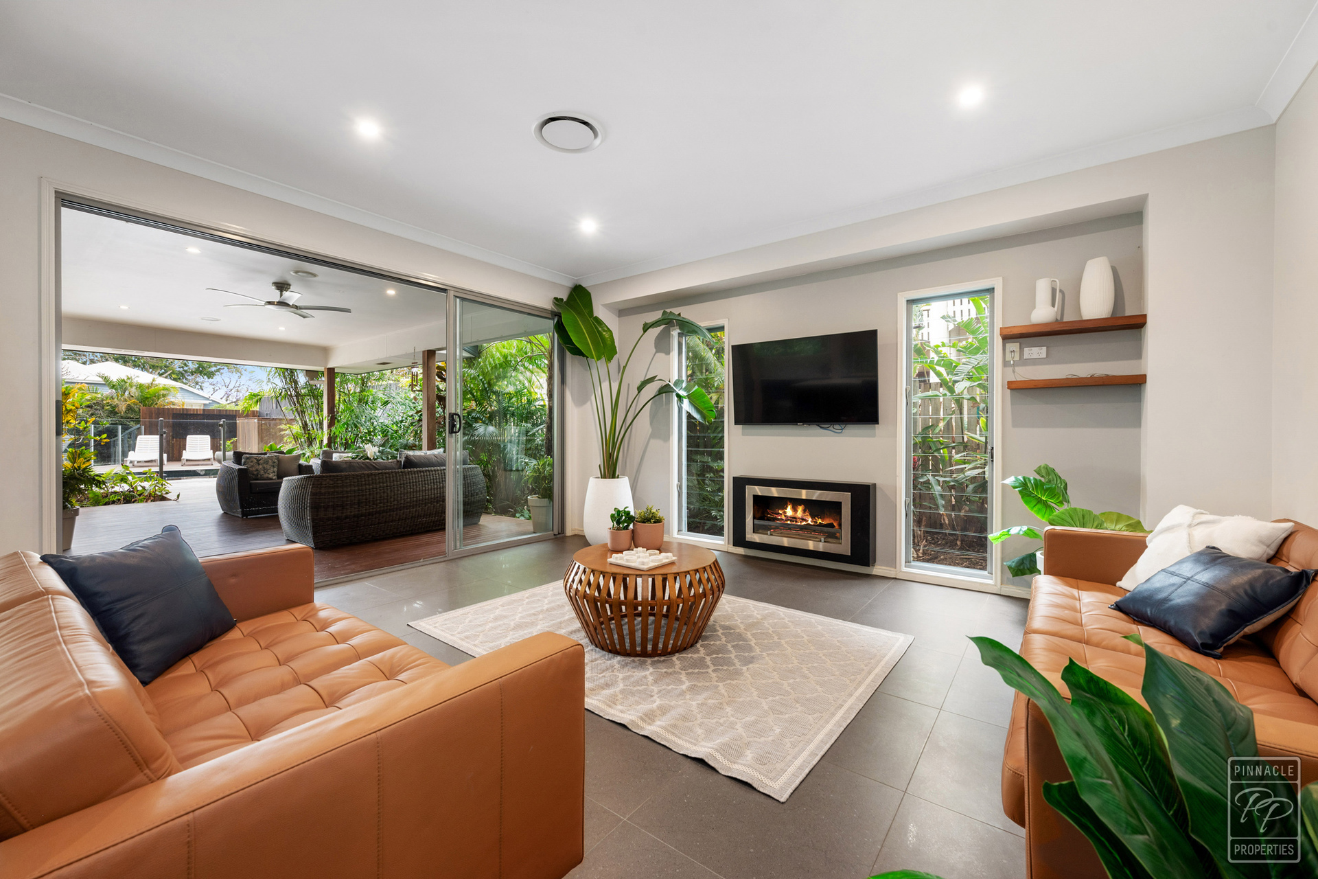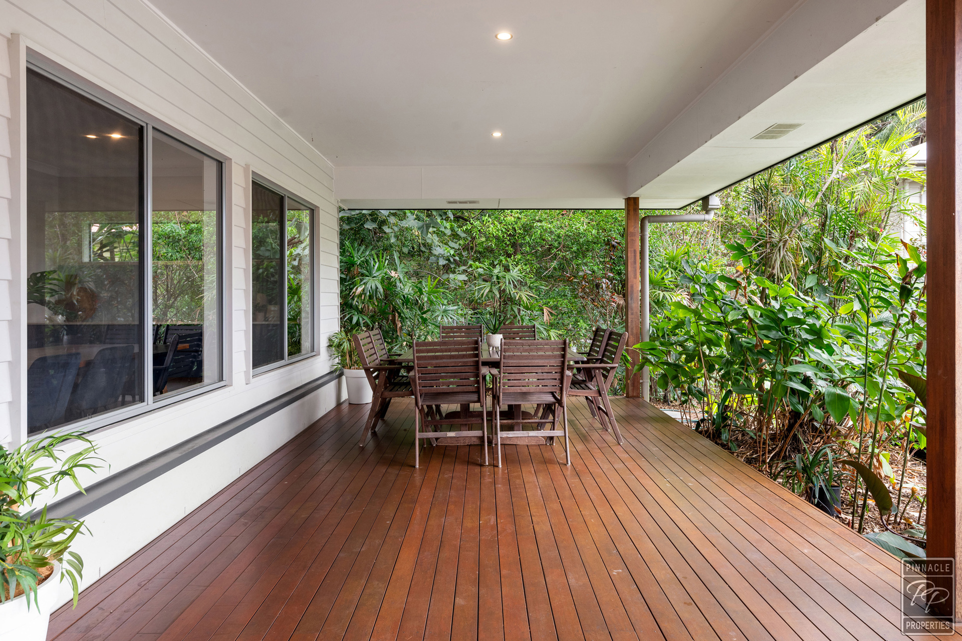 Enjoy your private back garden through large sliding doors out to the covered deck overlooking the pool and spa. An ideal spot to relax and enjoy the tranquility or to entertain friends and family, all year-round.