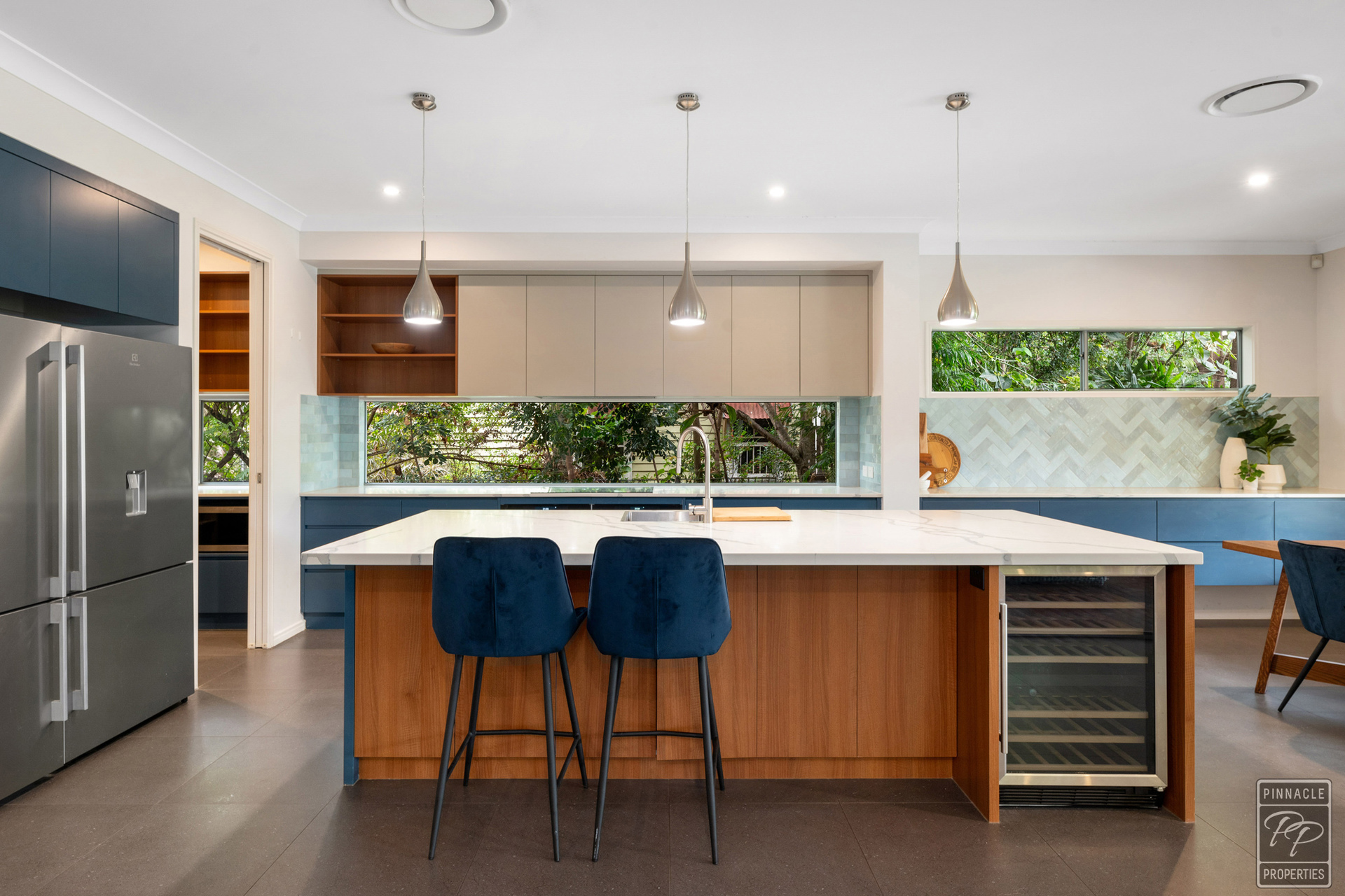The well-appointed, entertainers' kitchen is simply beautiful, equipped with stainless steel appliances, double ovens, ample cabinetry and an impressive island, with stone bench. But wait, there is more! You also have a spacious walk-in pantry, with even more storage.