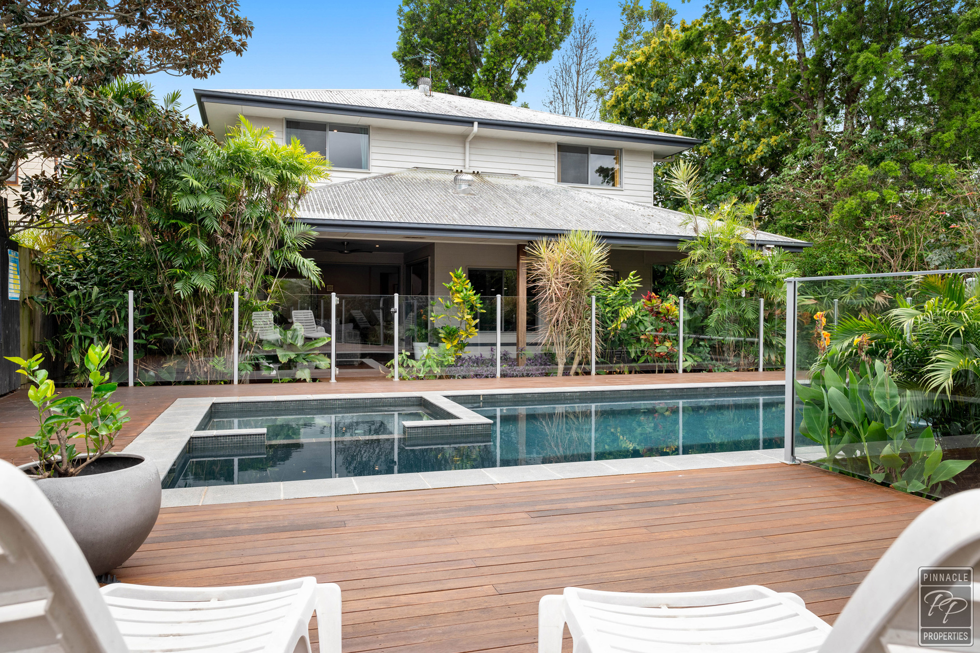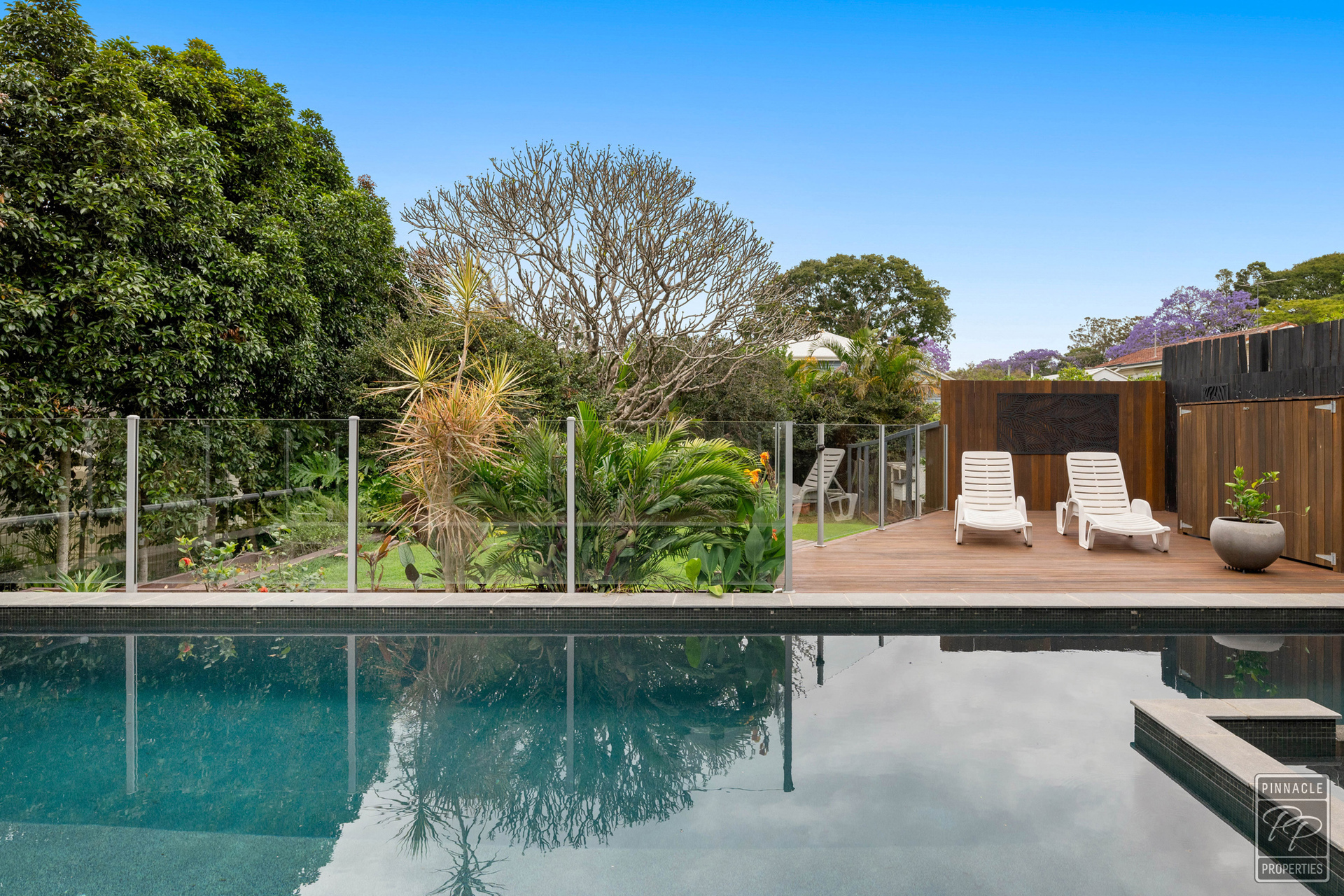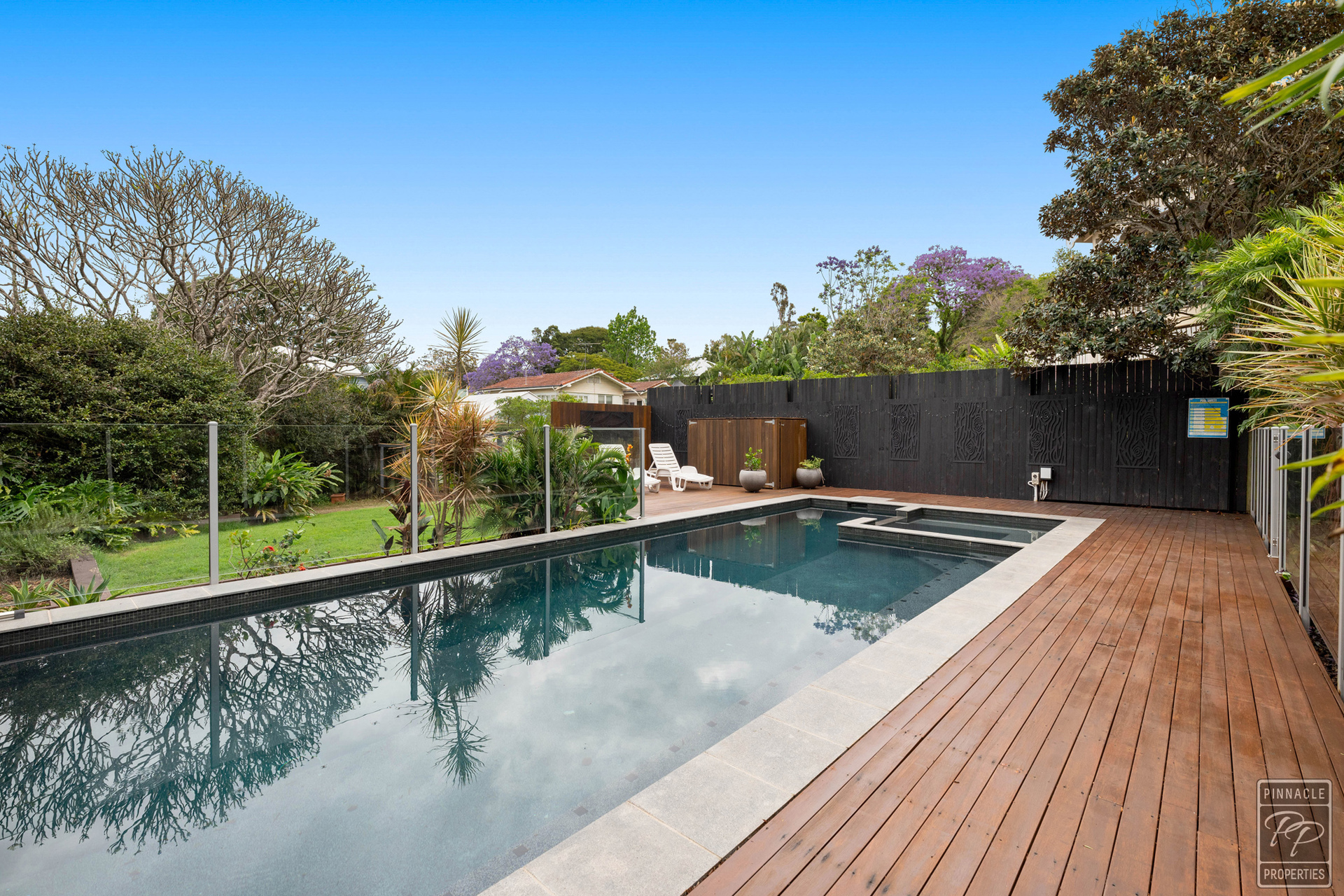 The beautiful inground pool, and spa (with heat pump) are surrounded by timber decking and lush tropical gardens. The low maintenance yard is fully fenced to keep the children and pets safe.