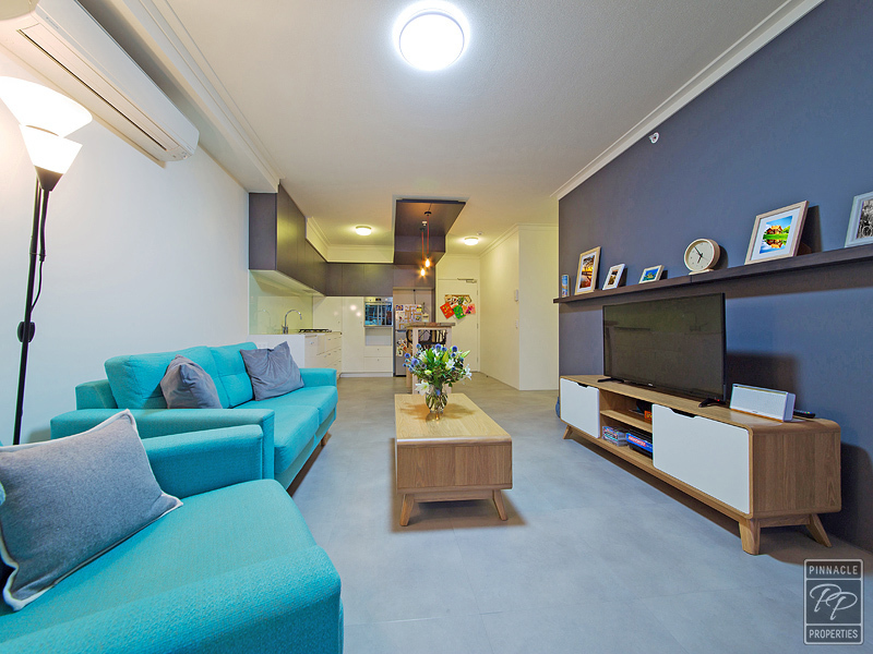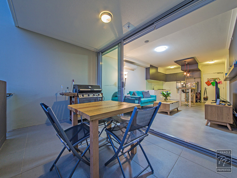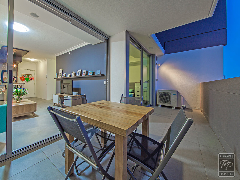 The spacious, open plan living area with exceptional natural light and air flow, is air-conditioned and opens to your generously sized balcony, the perfect place for your morning coffee or a quiet evening drink and BBQ with friends and enjoying the amazing city views.