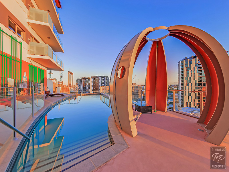 The 11th floor provides exclusive access to the beautiful tropical oasis garden with BBQ Facility, roof top swimming pool, "Sky Gallery" a shared theatre room, and of course those breathtaking City and West End views.