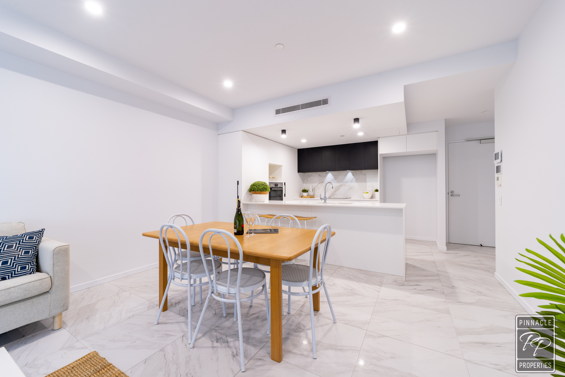 This is a beautifully designed apartment, offering all-year-round comfort, with ducted air conditioning. The open plan living dining area opens to the south east facing balcony through large glass stacking doors. The kitchen has stone benchtops, 2 pac cabinetry and Bosch appliances.