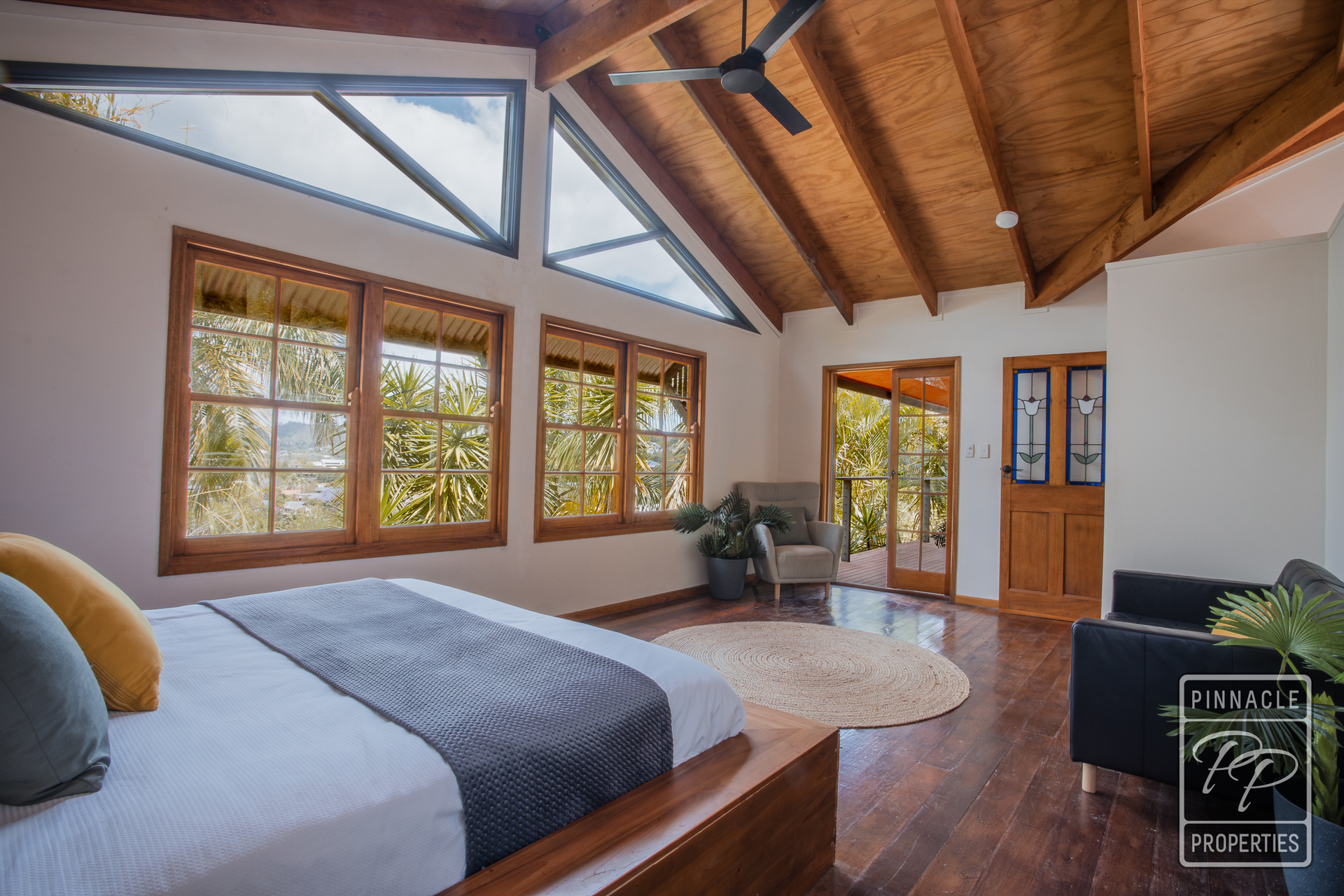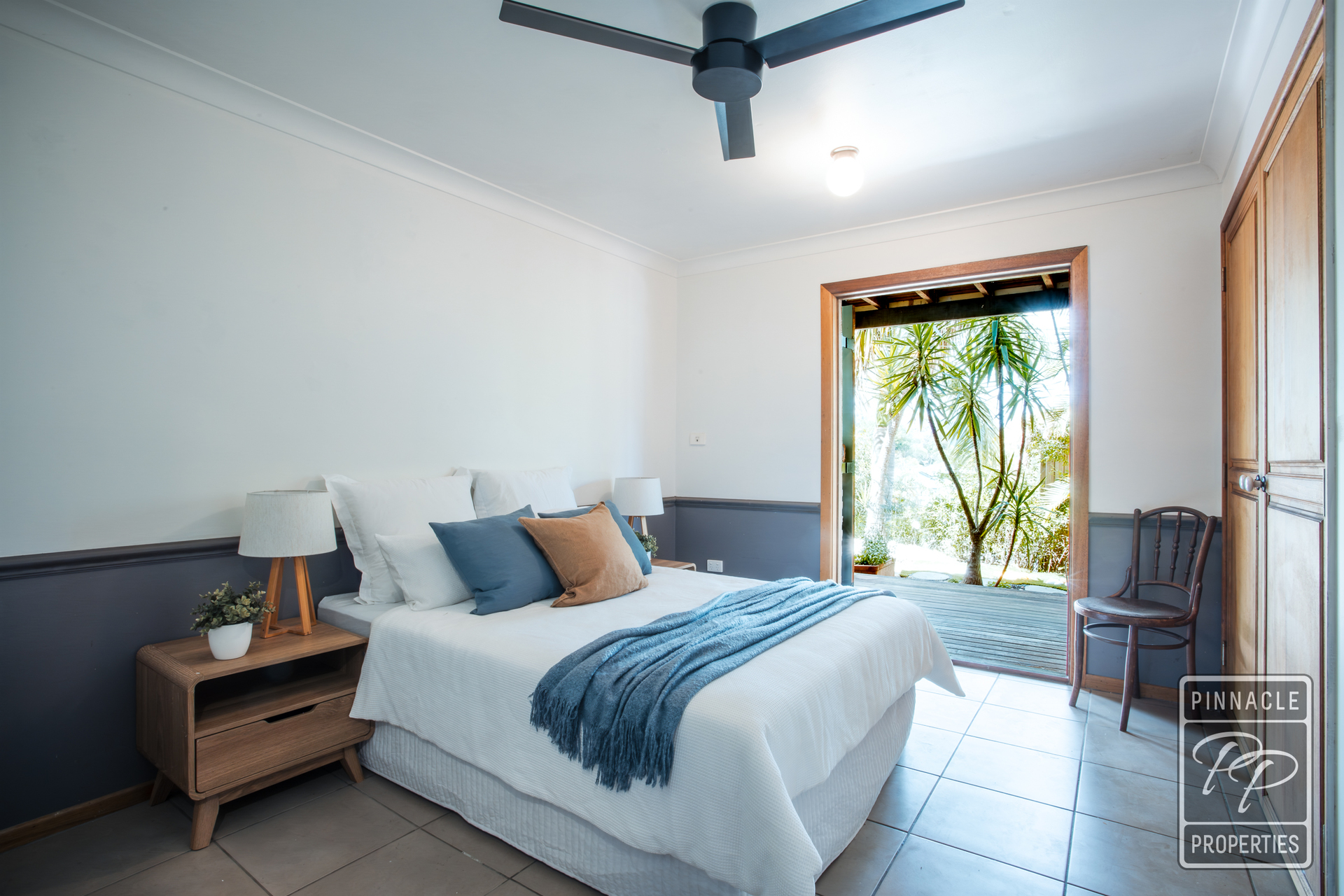 o Main Bedroom: Spacious and filled with light, with French doors to the deck, a walk-in robe, ceiling fan, and incredible views.