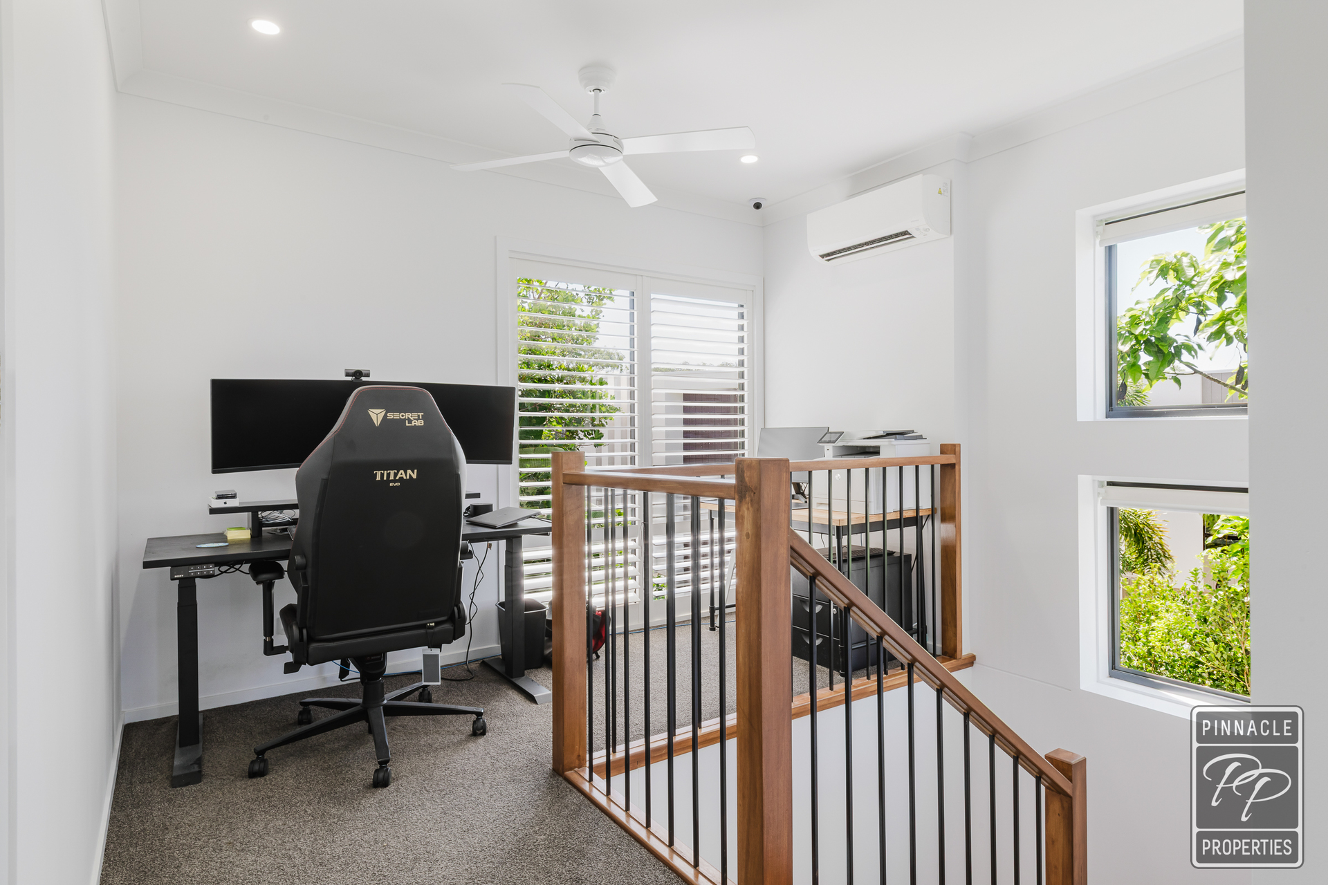 Upstairs, a stunning timber staircase leads to a versatile landing area - ideal as a home office, reading nook, kids' retreat or relaxation zone.