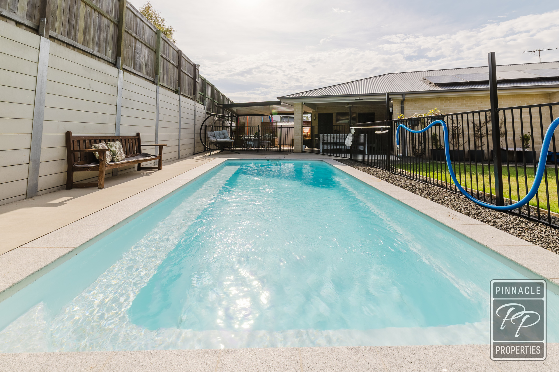 A wide, welcoming hallway leads you through to the spacious open-plan living, dining and kitchen area - the true heart of the home. Ducted air-conditioning ensures year-round comfort, while large sliding glass doors open seamlessly to the fabulous outdoor entertaining area and sparkling brand-new inground heated pool.