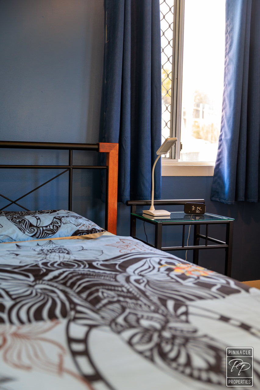 All four bedrooms are a good size. Three are close to the family bathroom, and the fourth has a separate entrance and private deck. Two of the bedrooms have ceiling fans and built-in robes.