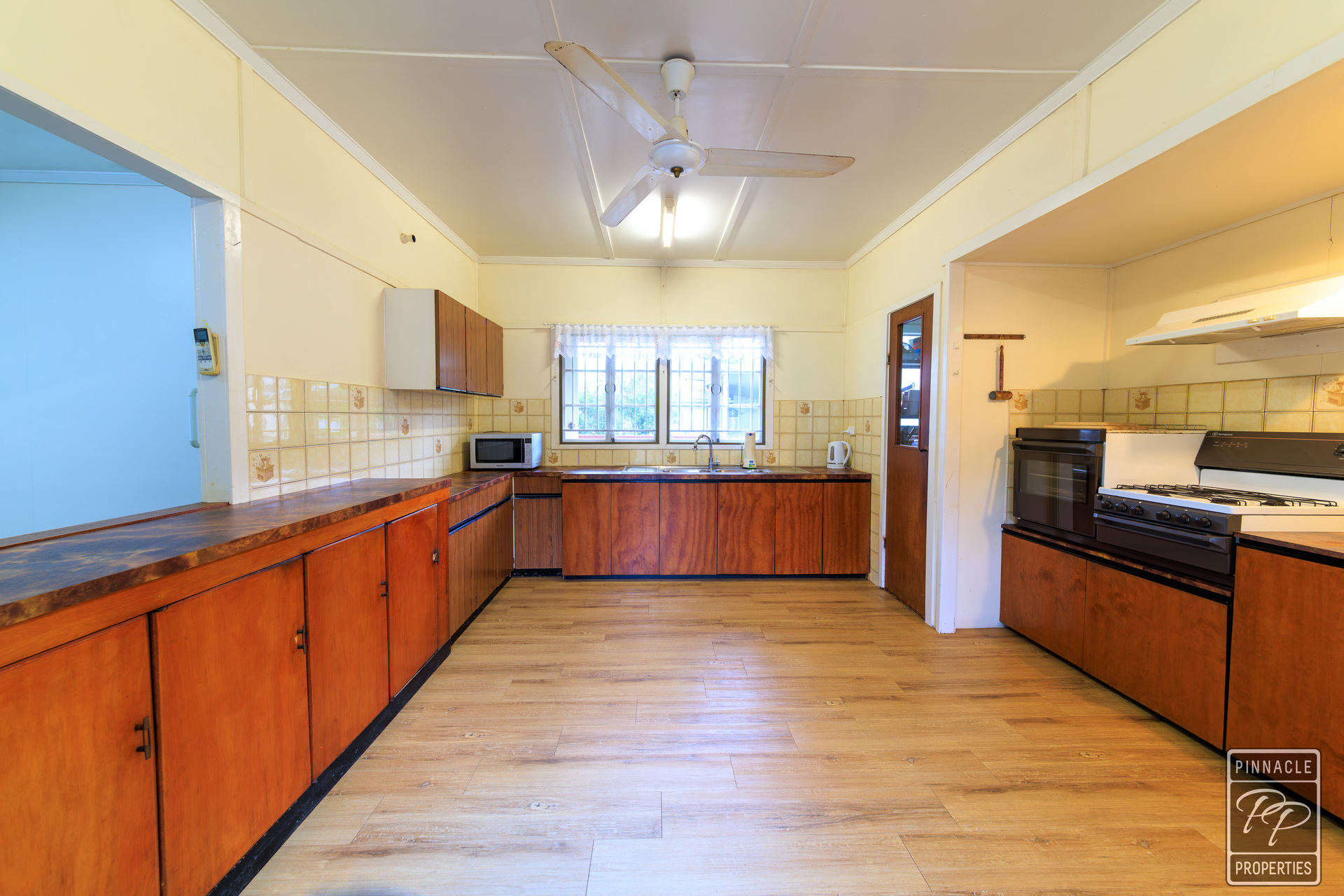 The lounge room flows to the spacious dining room and large family sized kitchen. The kitchen has ample bench space and storage, a walk-in pantry and breakfast bar. The dining room has a large split system air conditioner, which keeps all the living areas lovely and cool.